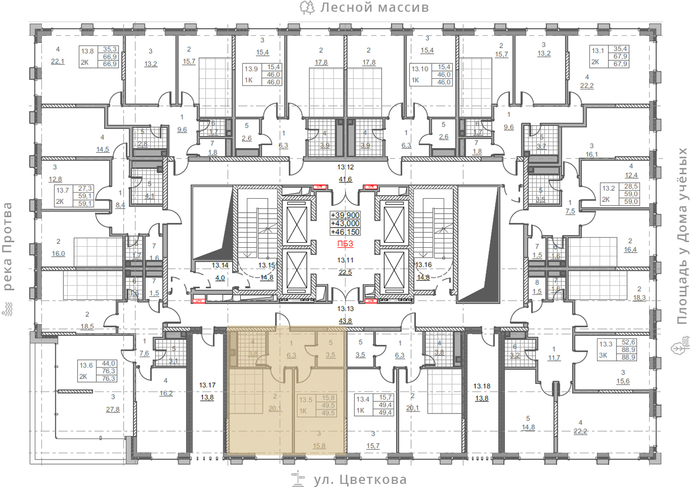 на этаже: 13