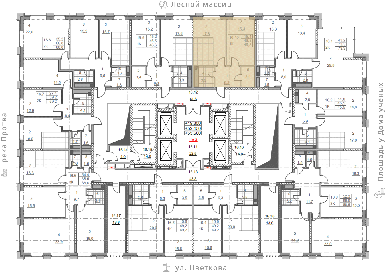на этаже: 16