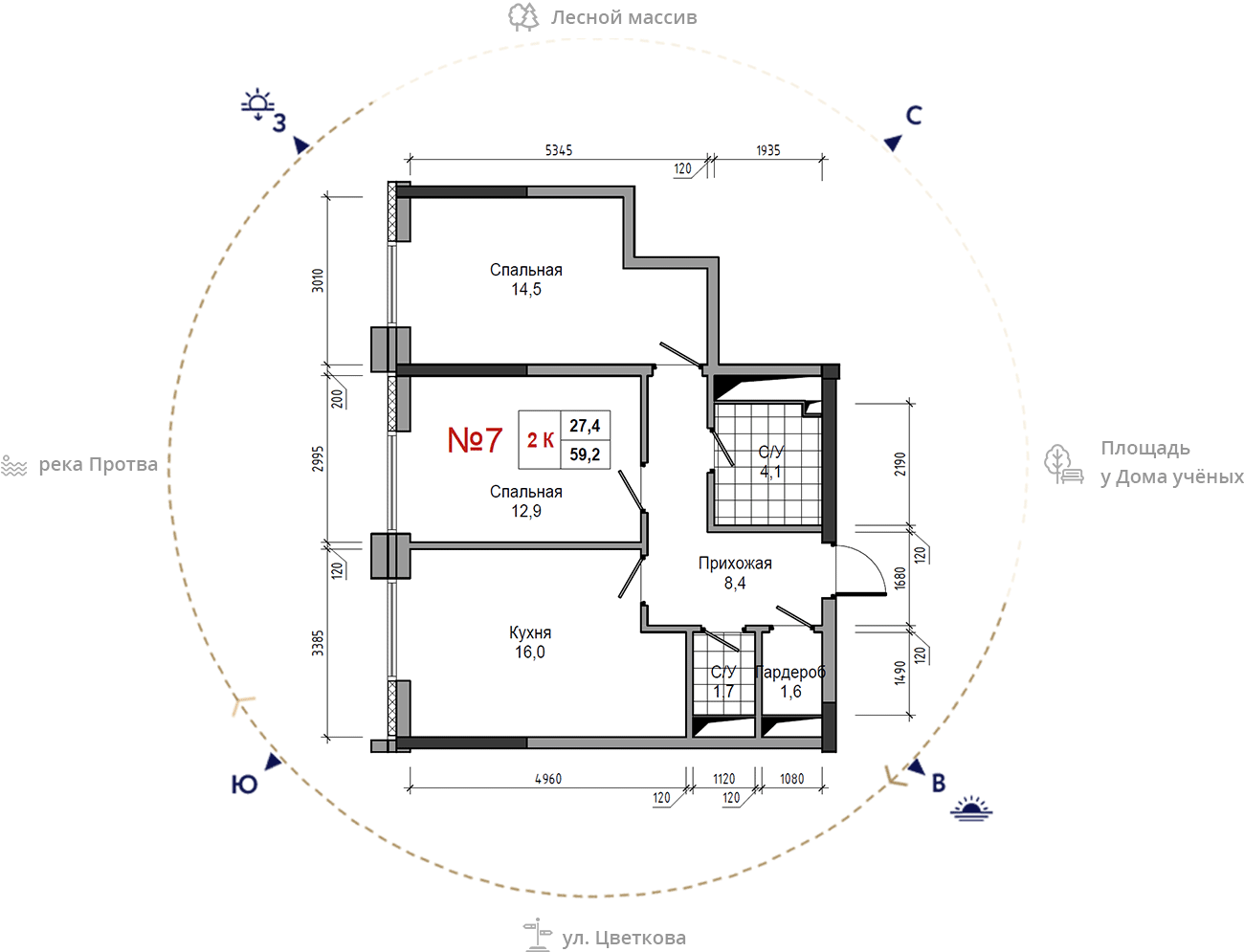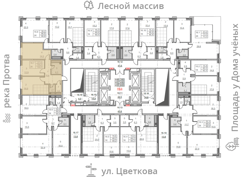 • площадь: 59.2 м2