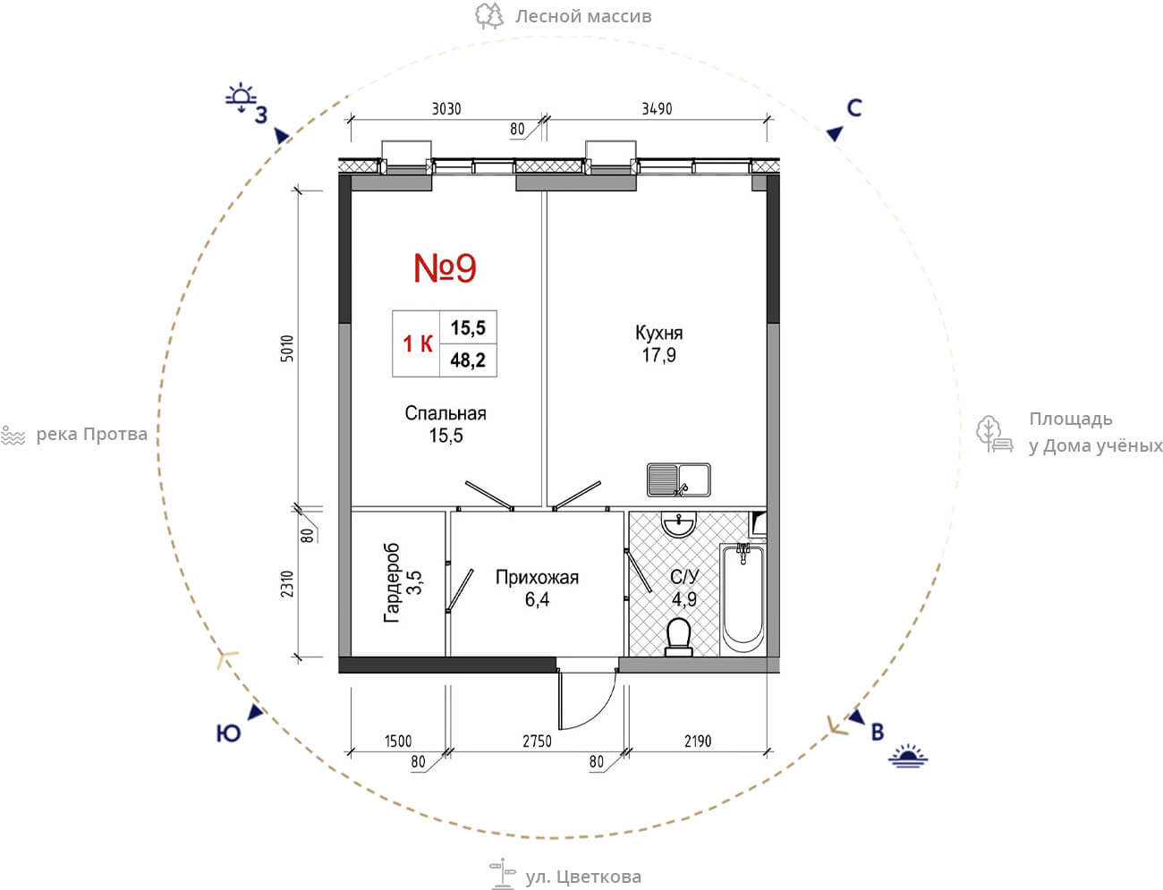 • площадь: 48.2 м2