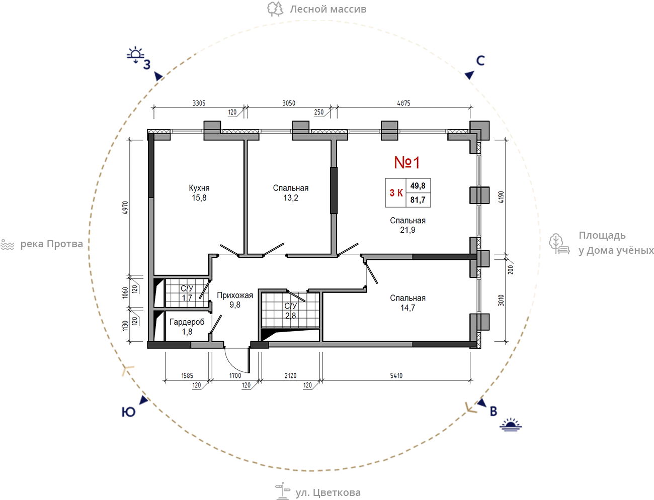 • площадь: 81.7 м2