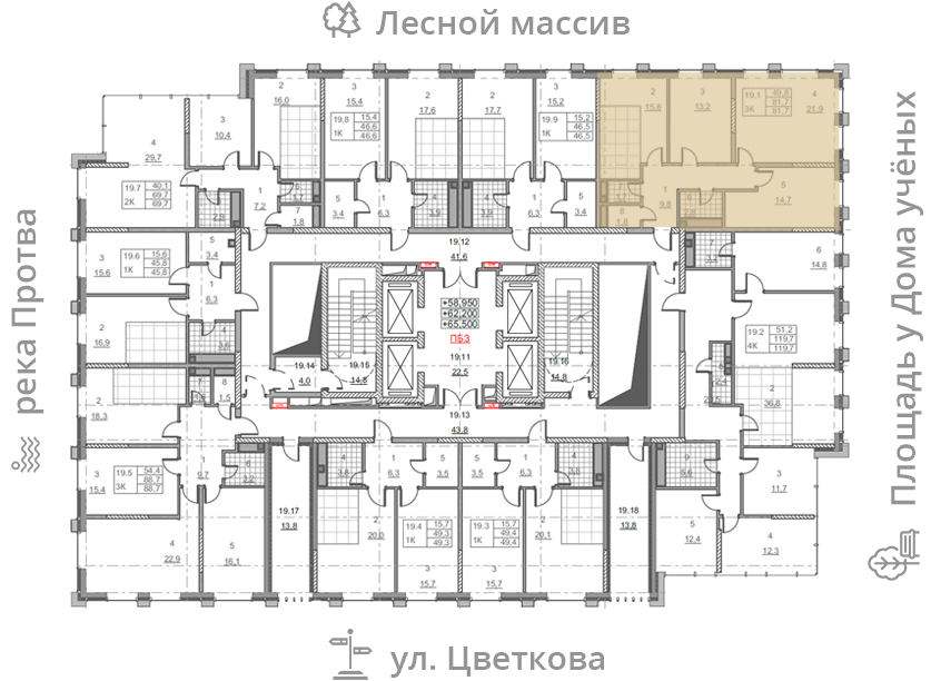 на этаже: 19