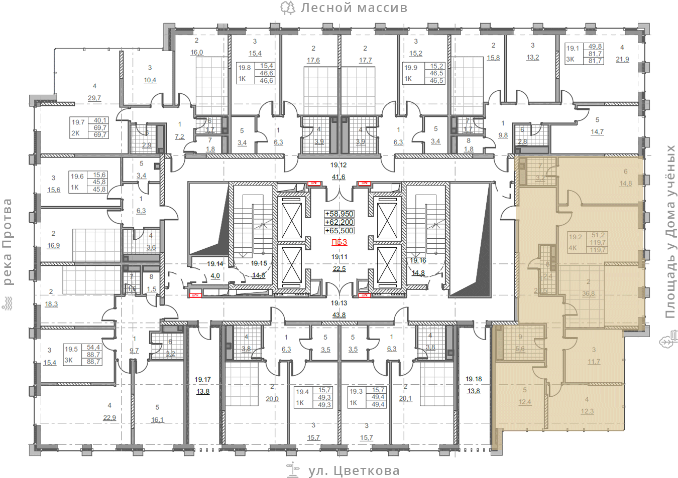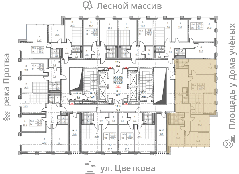 на этаже: 19