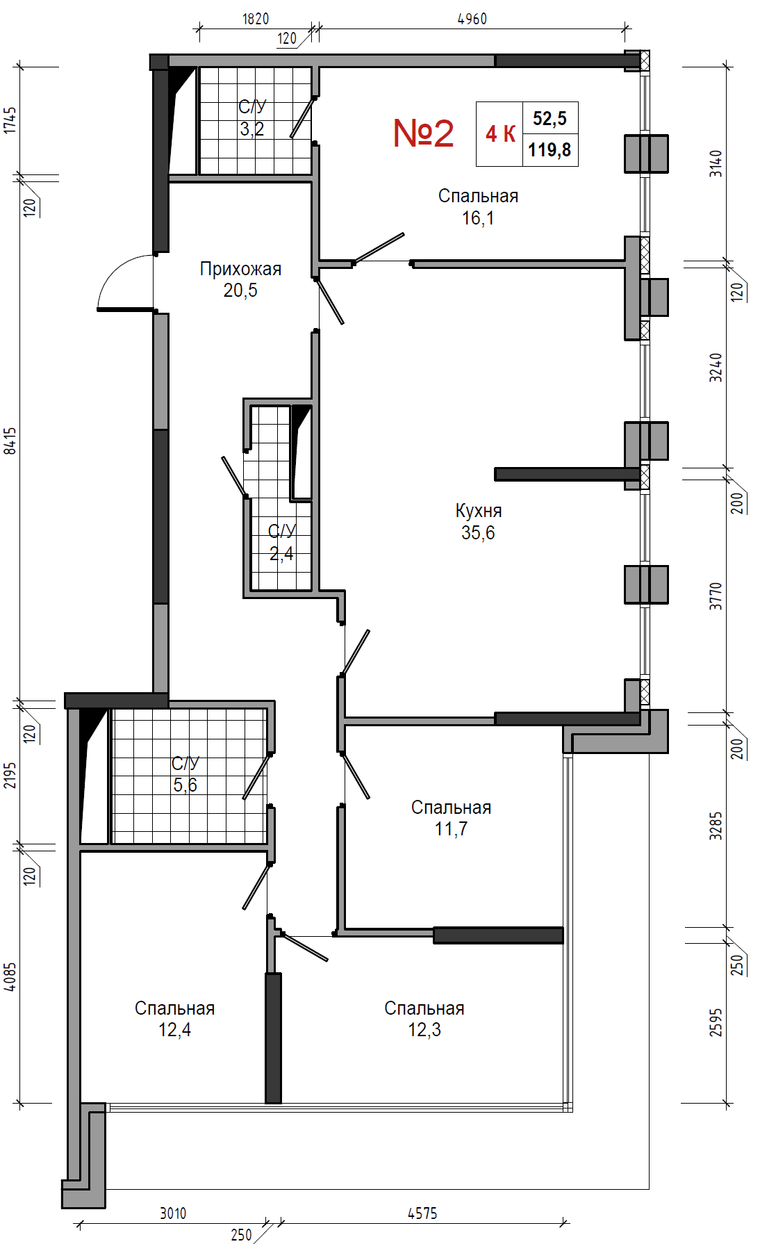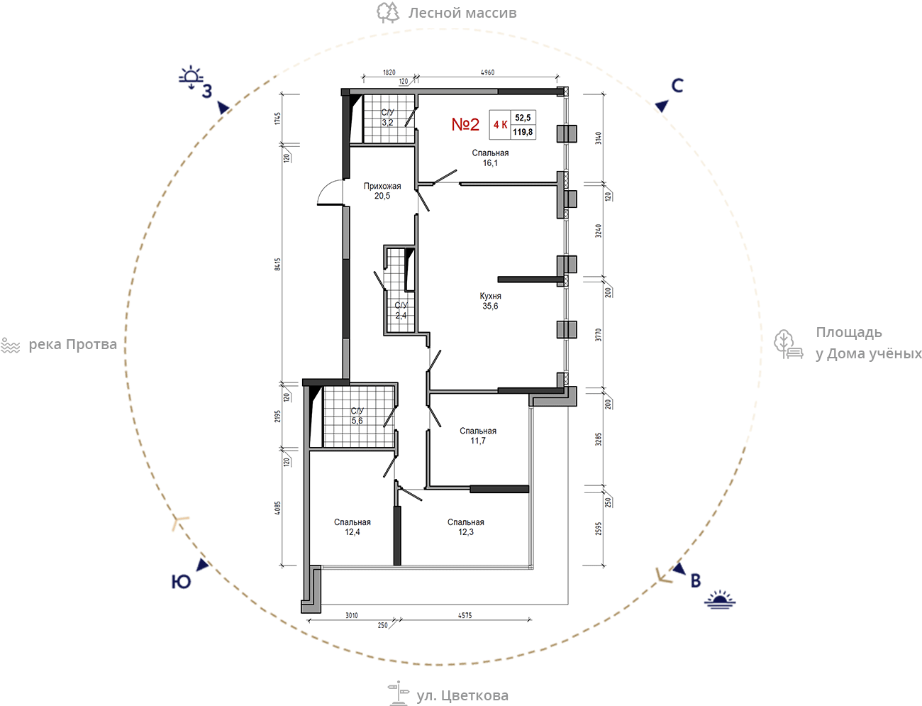 • площадь: 119.8 м2