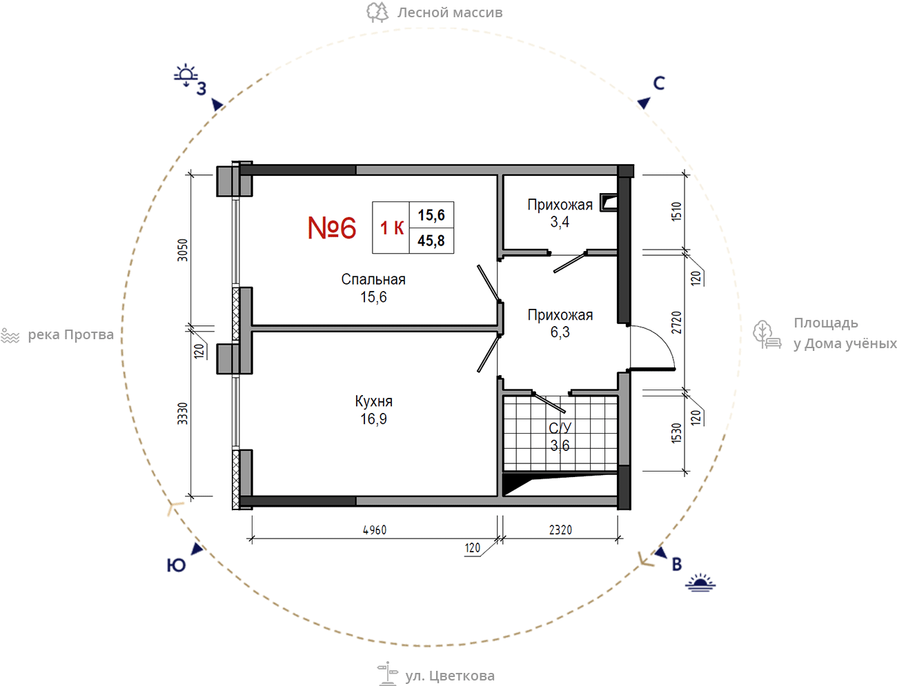 • площадь: 45.8 м2