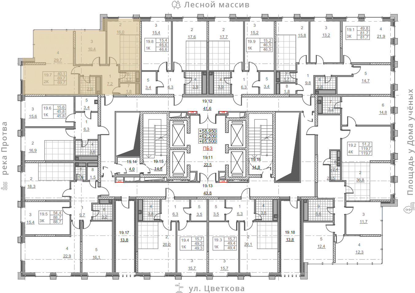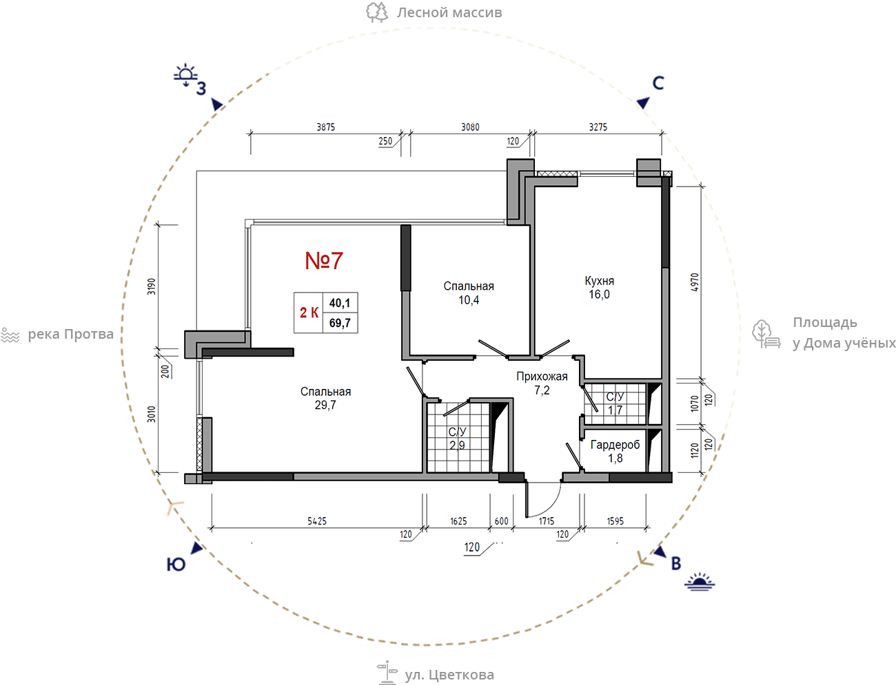 • площадь: 69.7 м2