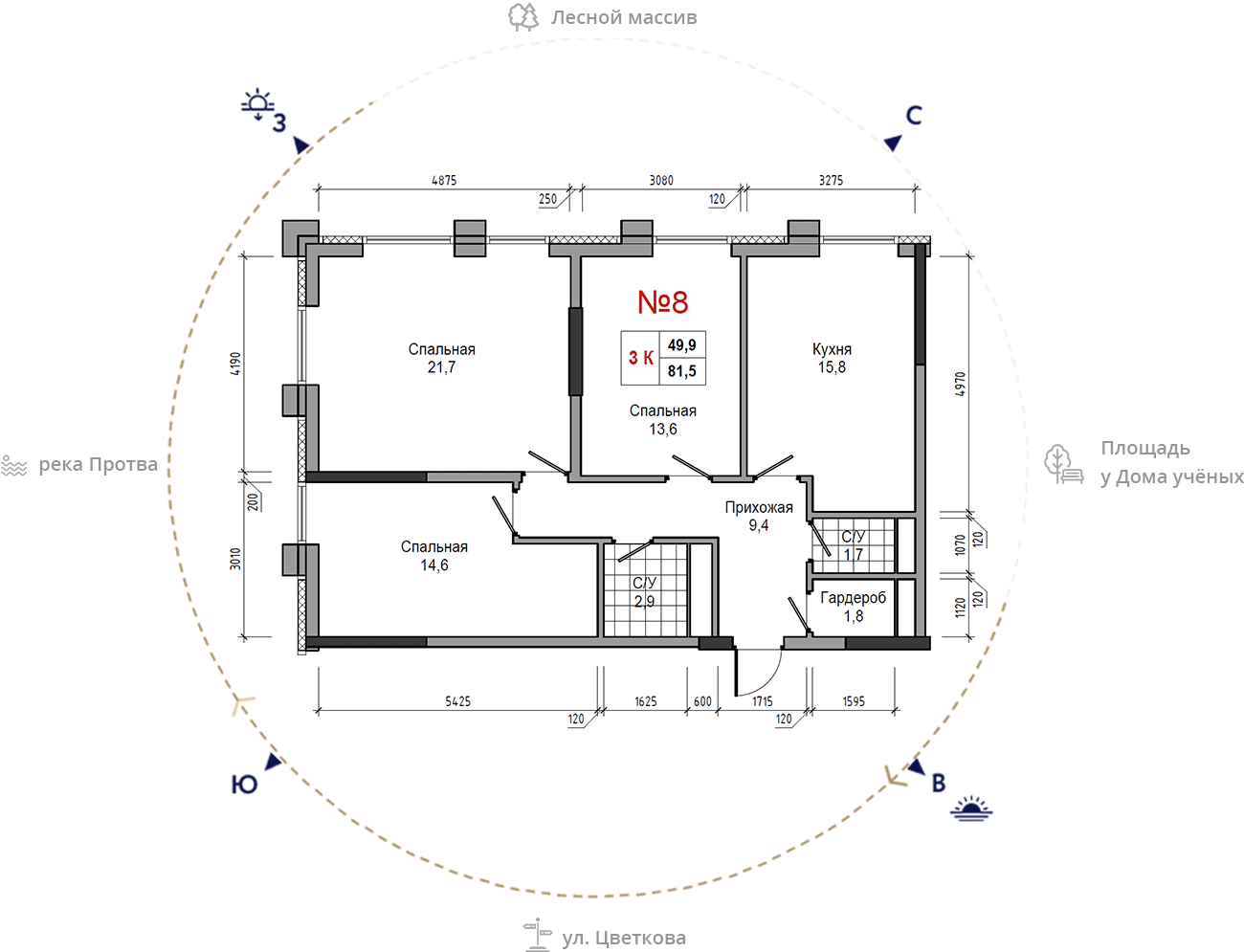 • площадь: 81.5 м2