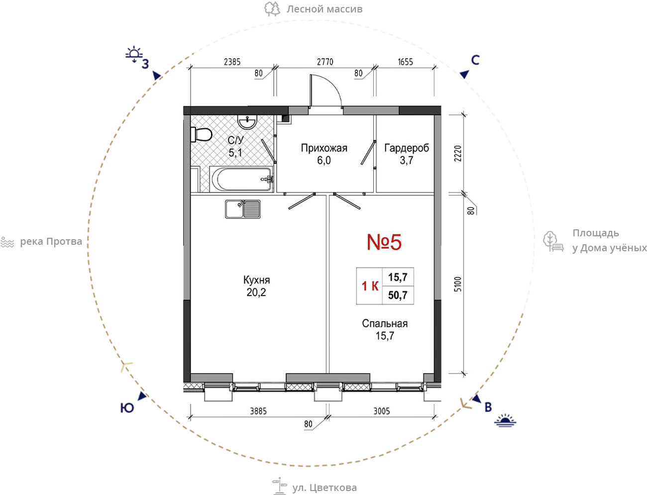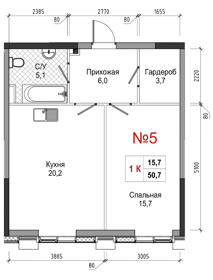 • площадь: 50.7 м2