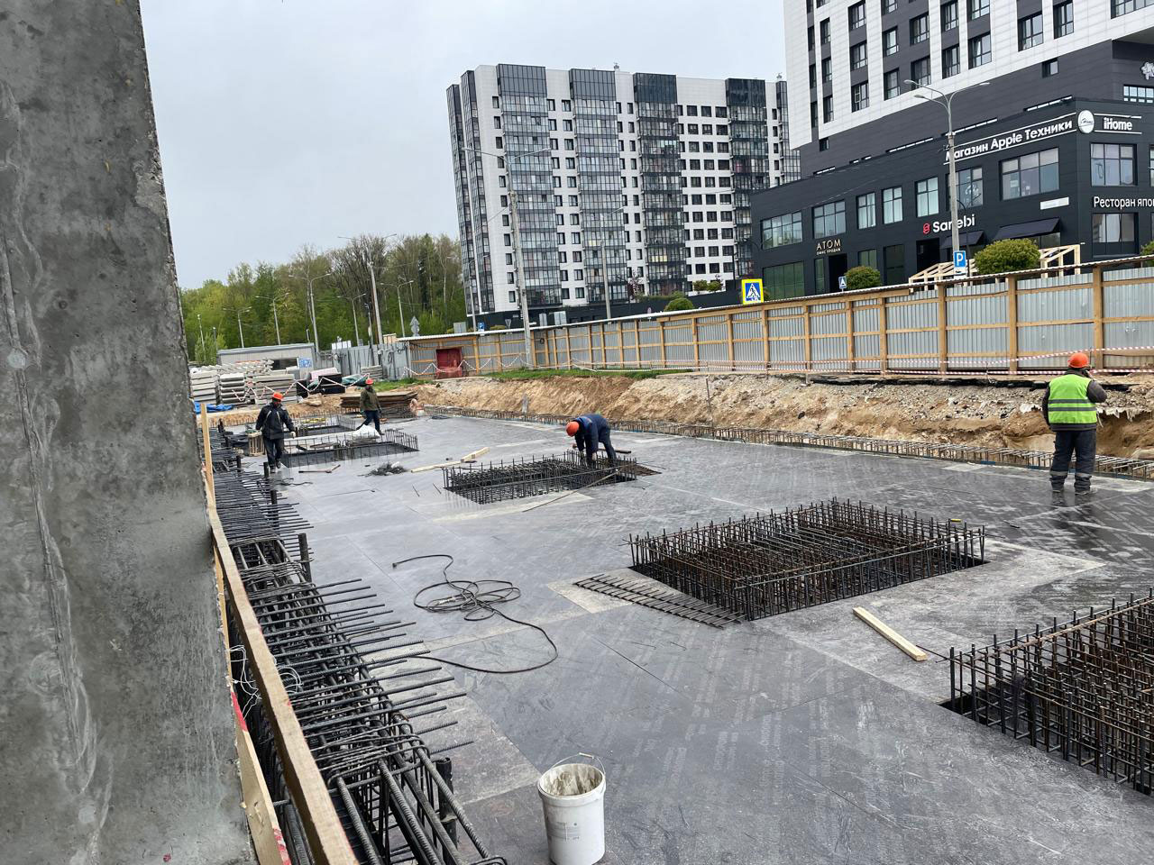2. Армирование и бетонирование стен подземного паркинга