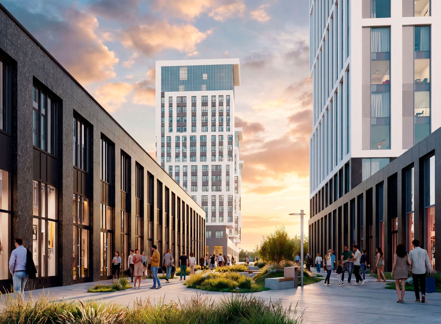 Архитектурное доминирование комплекса в деловом ландшафте города дополняется продуманной внутренней инфраструктурой, ориентированной на потребности всех категорий собственников и арендаторов — от малых предприятий до крупных корпораций.