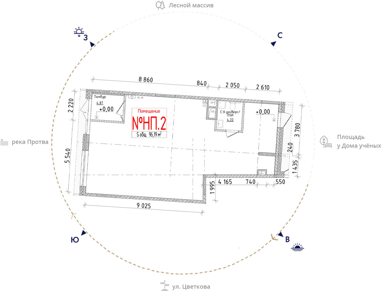 • площадь: 96.19 м2
