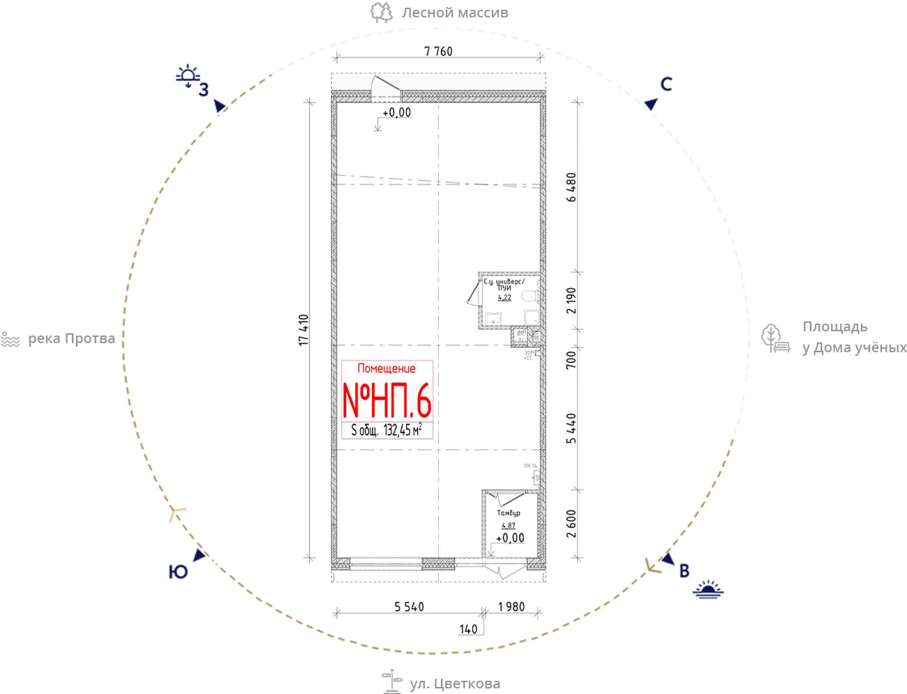 • площадь: 132.45 м2