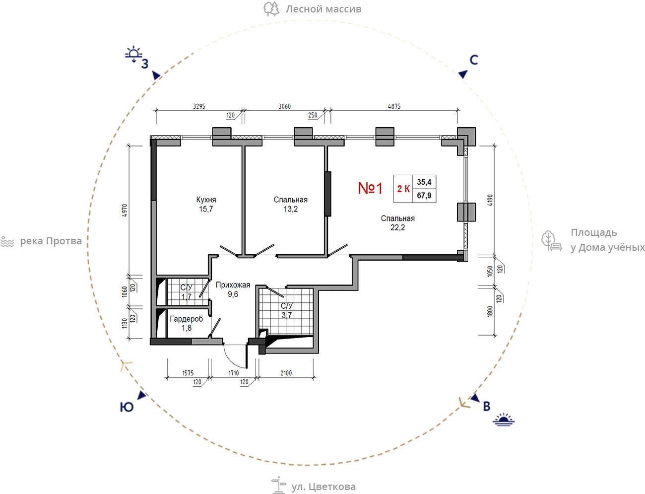 • площадь: 67.9 м2