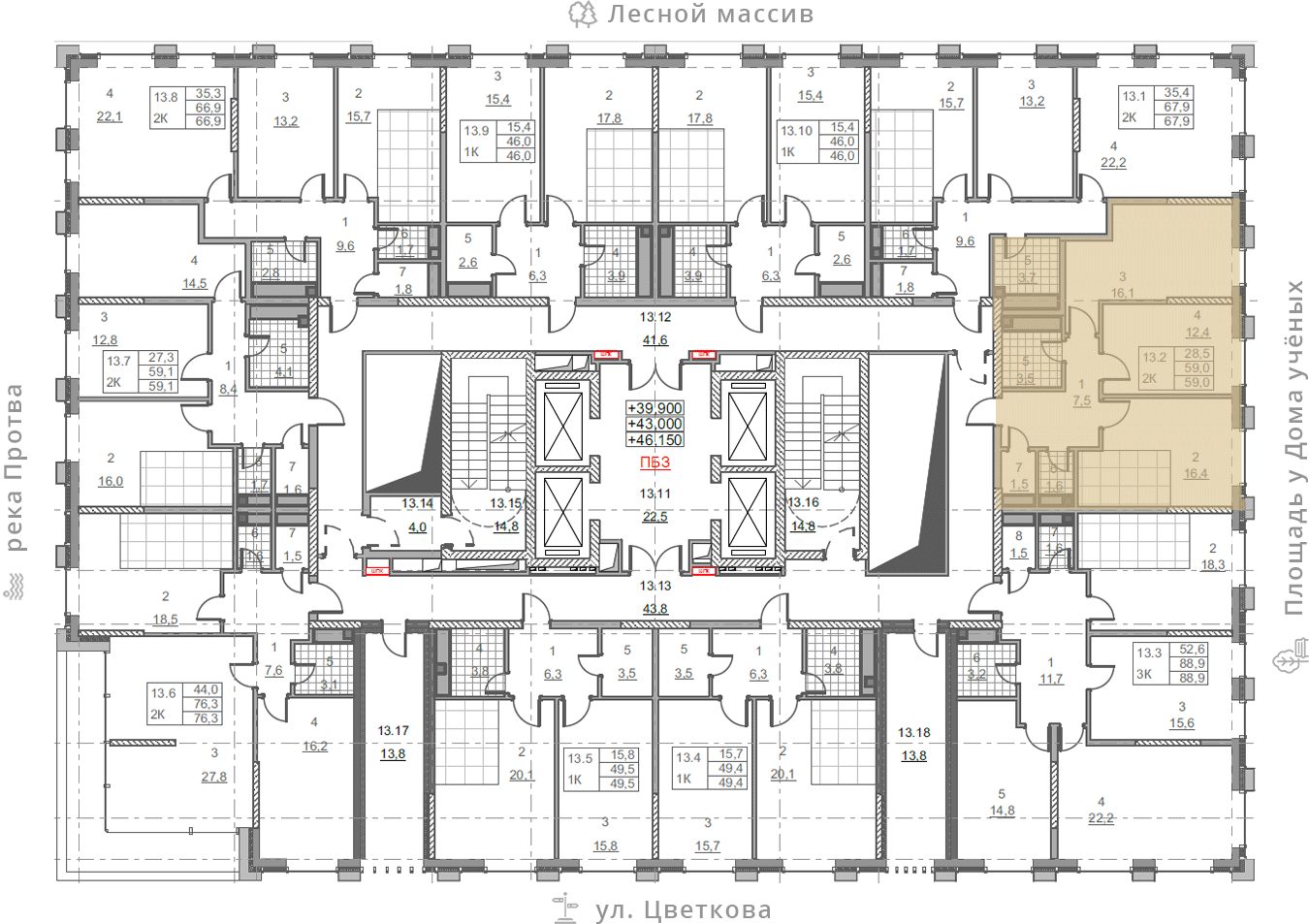 на этаже: 13