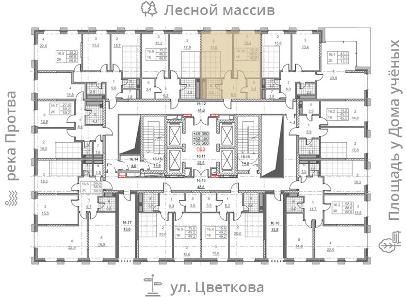 на этаже: 16