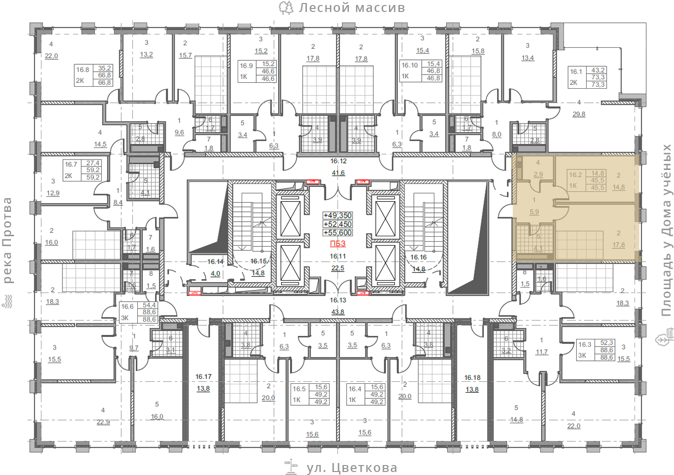на этаже: 16
