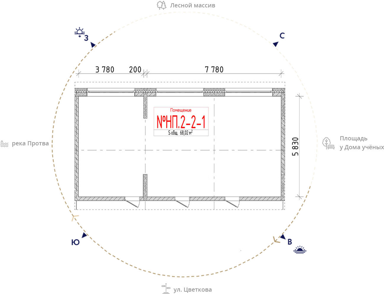 • площадь: 68.02 м2