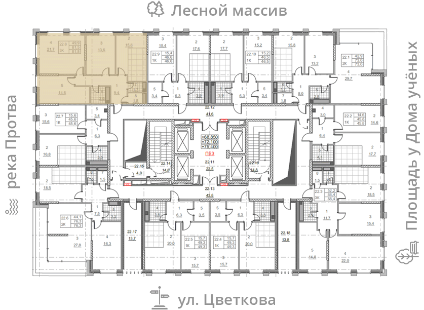 на этаже: 22