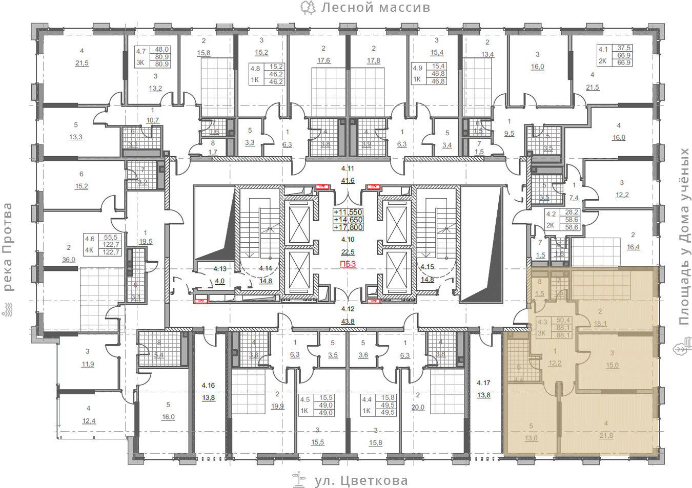 • площадь: 88.1 м2